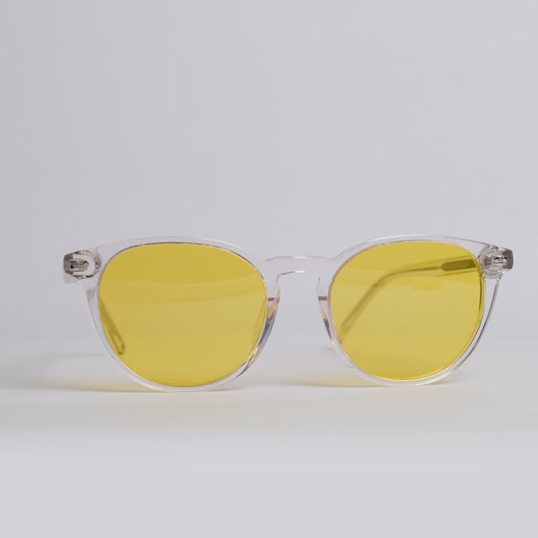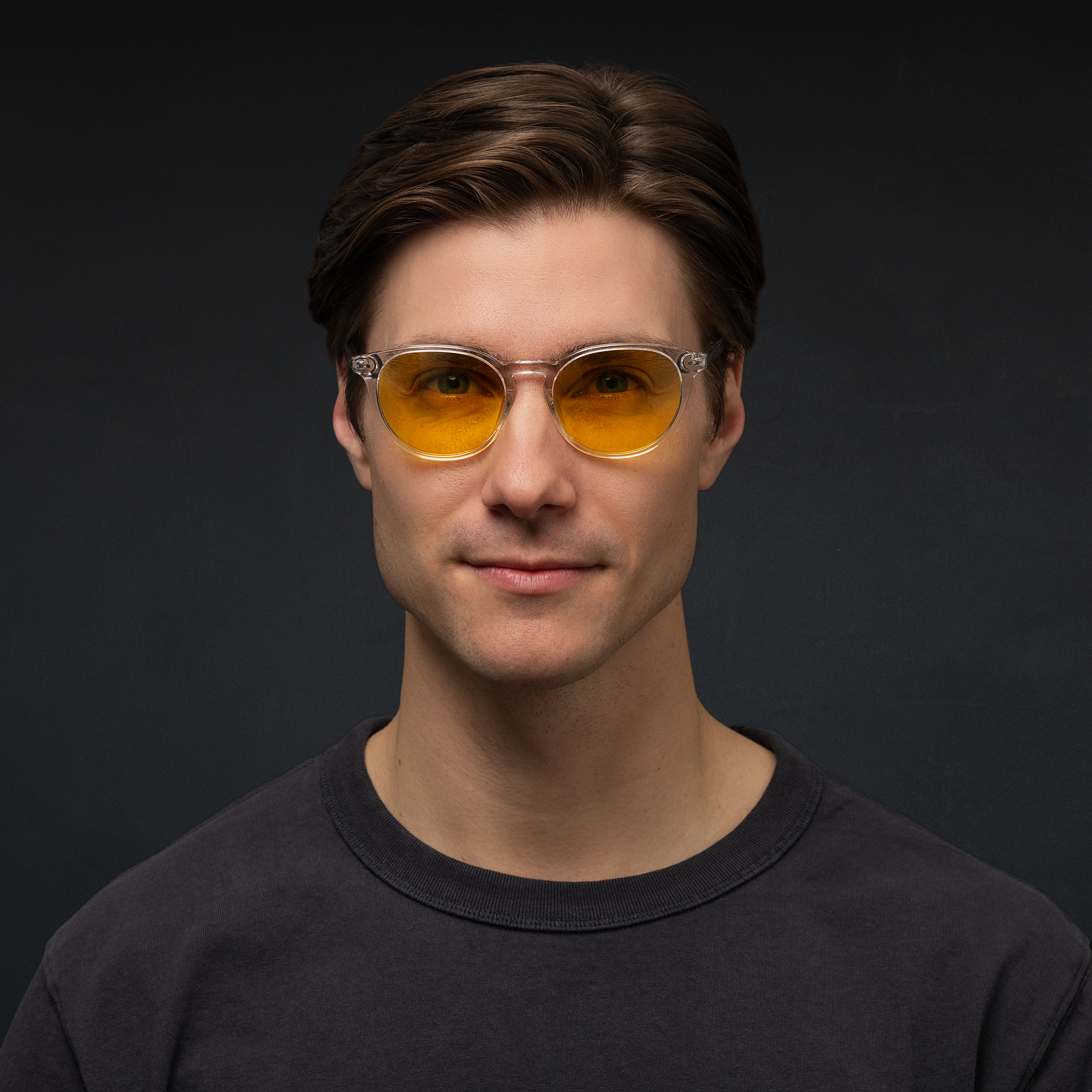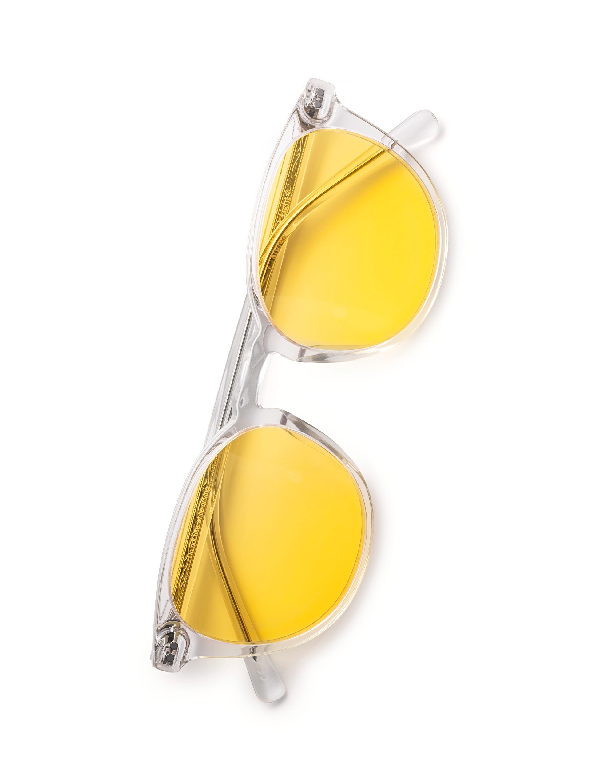 A minimalist silhouette with maximum impact. Clear Italian acetate frames paired with blue light blocking yellow lenses. Includes foldable hardshell case and microfiber lens cleaning cloth.
