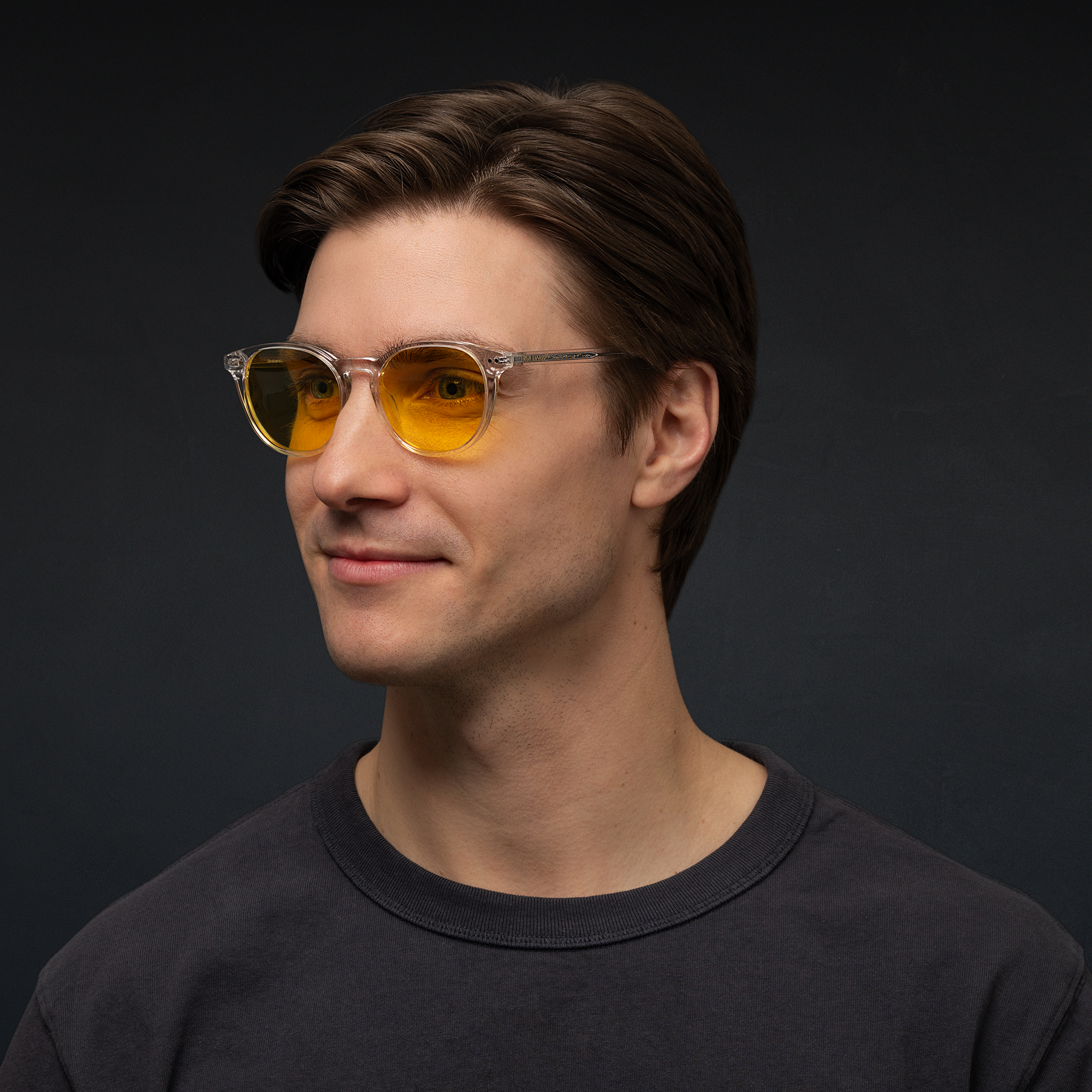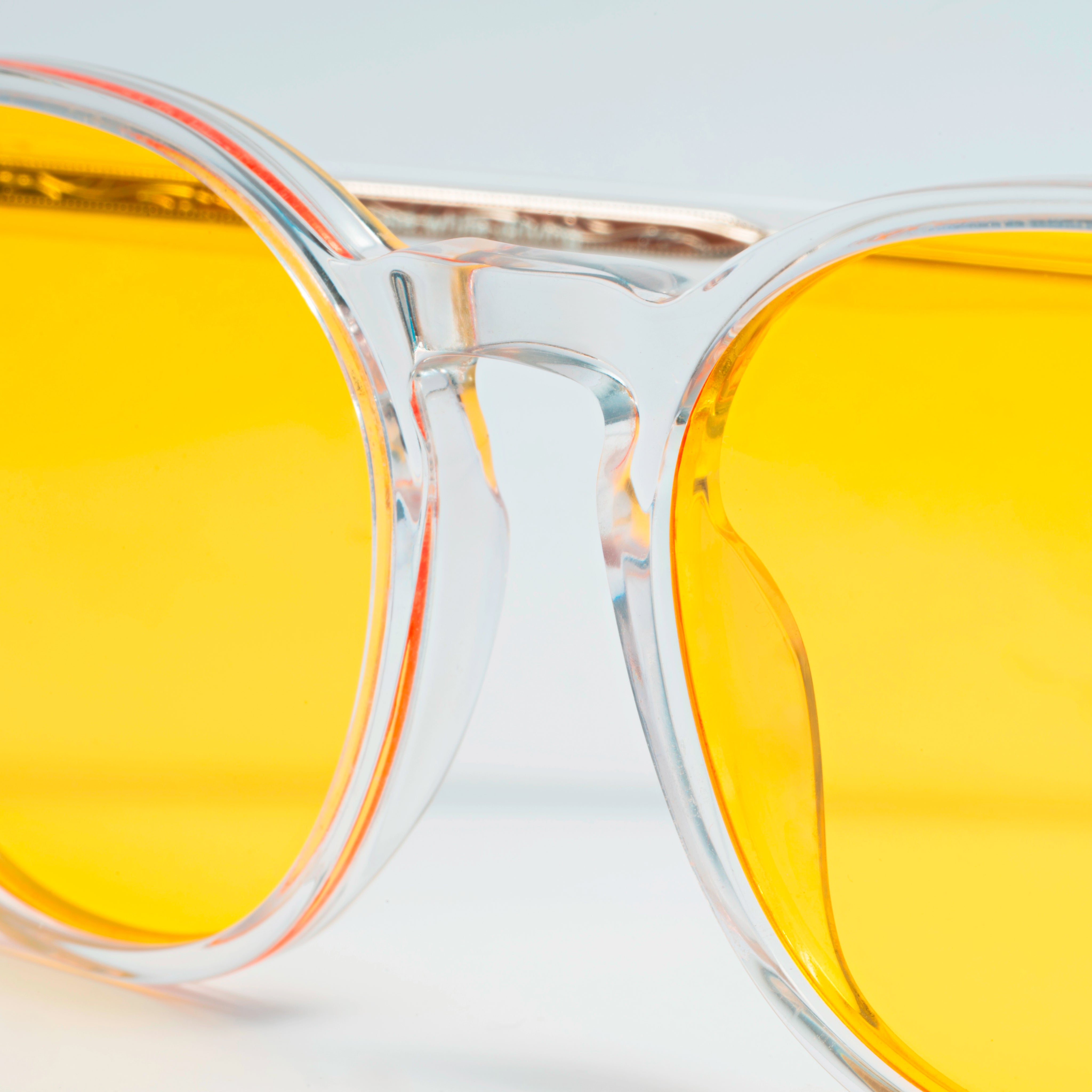 Yellow lenses filter 75% of harmful blue light from screens and LEDs.