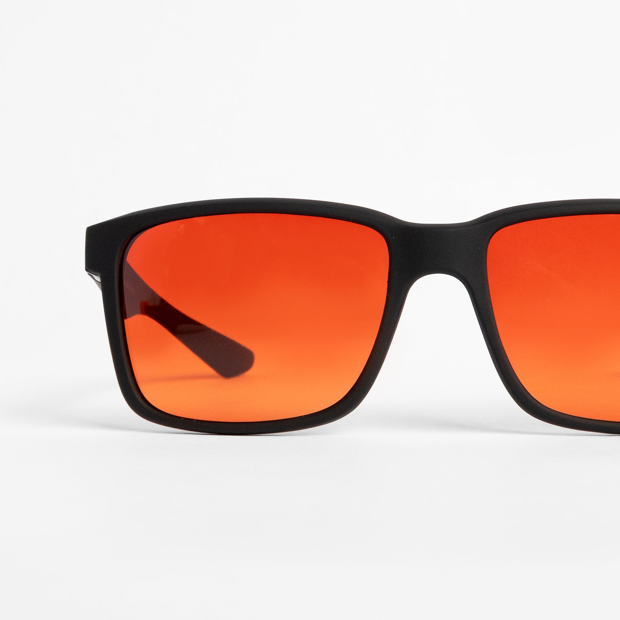Sunsets use a gradient lens that blocks 99% of blue light and up to 93% of green light. The darker red top shields you from harsh overheads, while the lighter yellow bottom keeps vision clear for evening tasks.