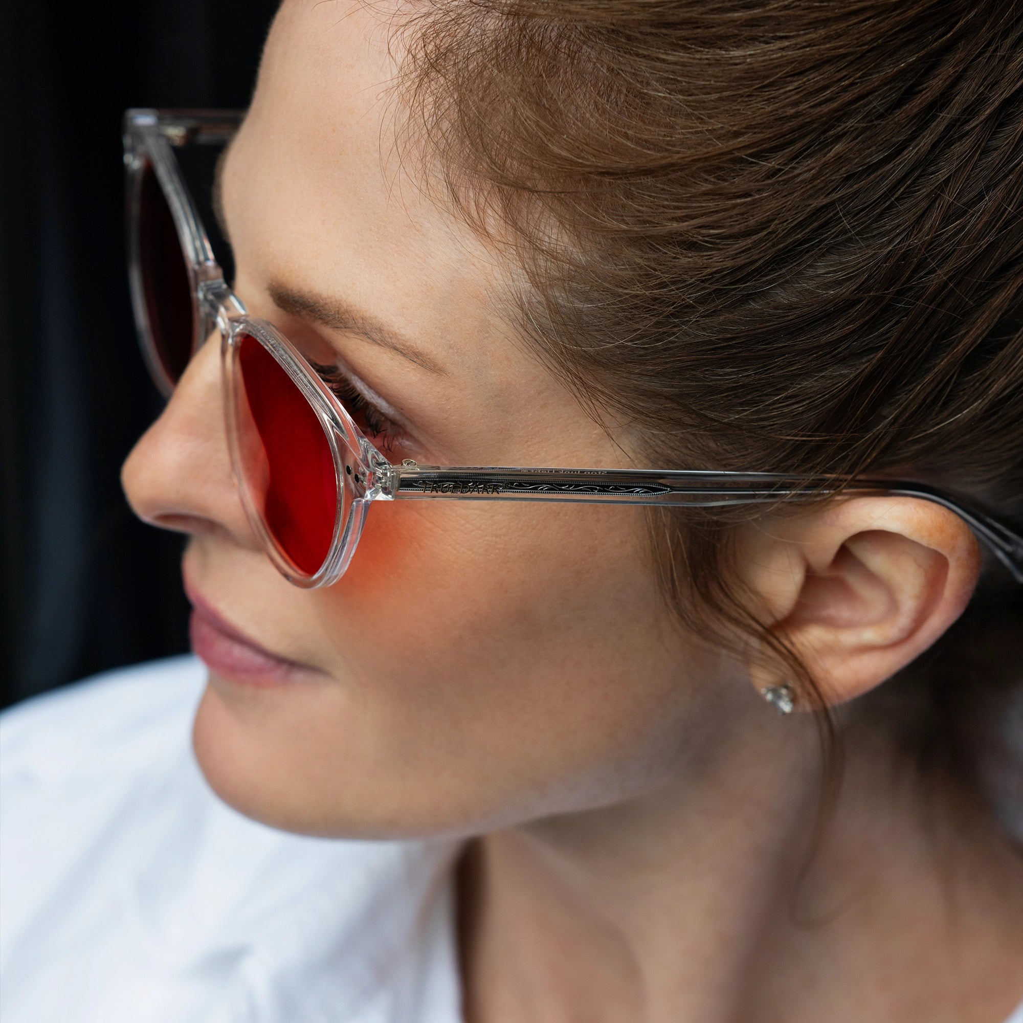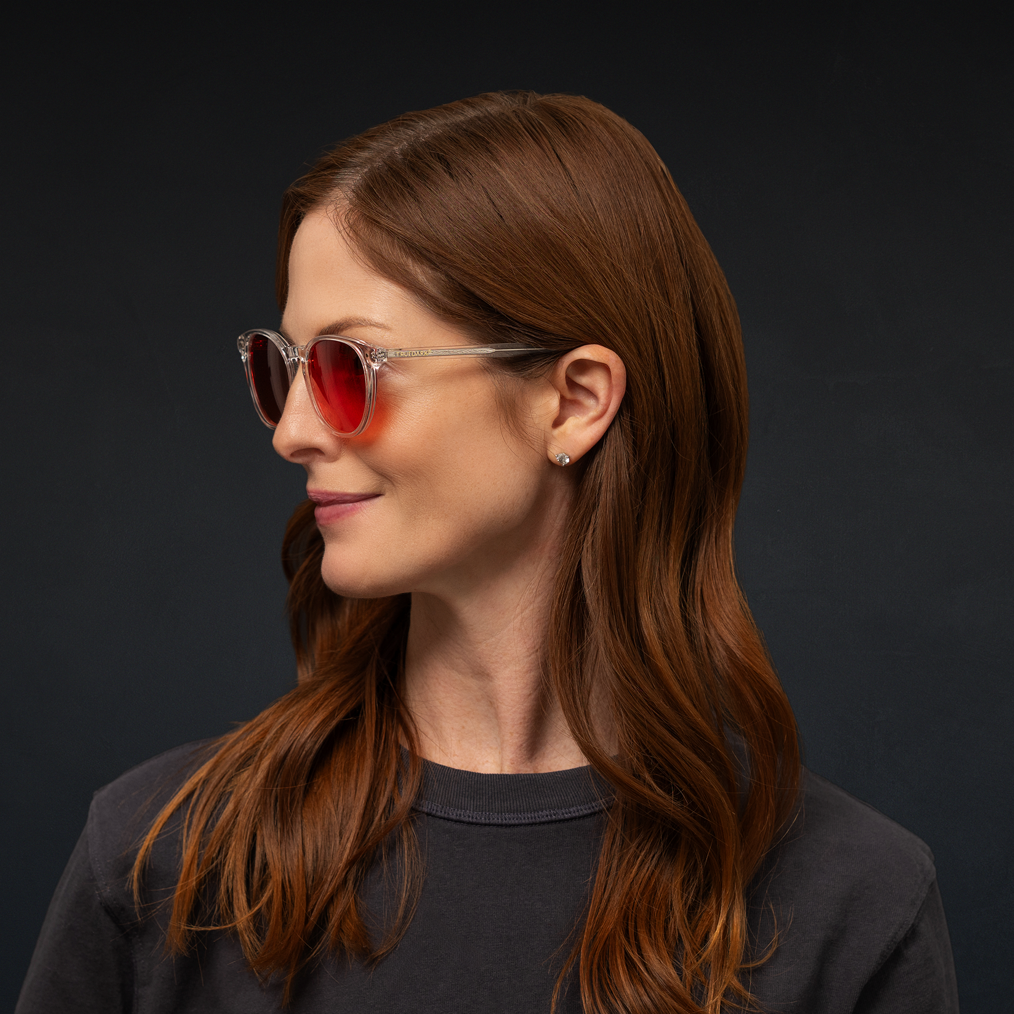 Gradient lens blocks 99% of blue and violet light, up to 93% of green light, plus 99% of UVA/UVB rays. Engineered to filter early evening junklight wavelengths that disrupt melatonin production and impact the sleep cycle.