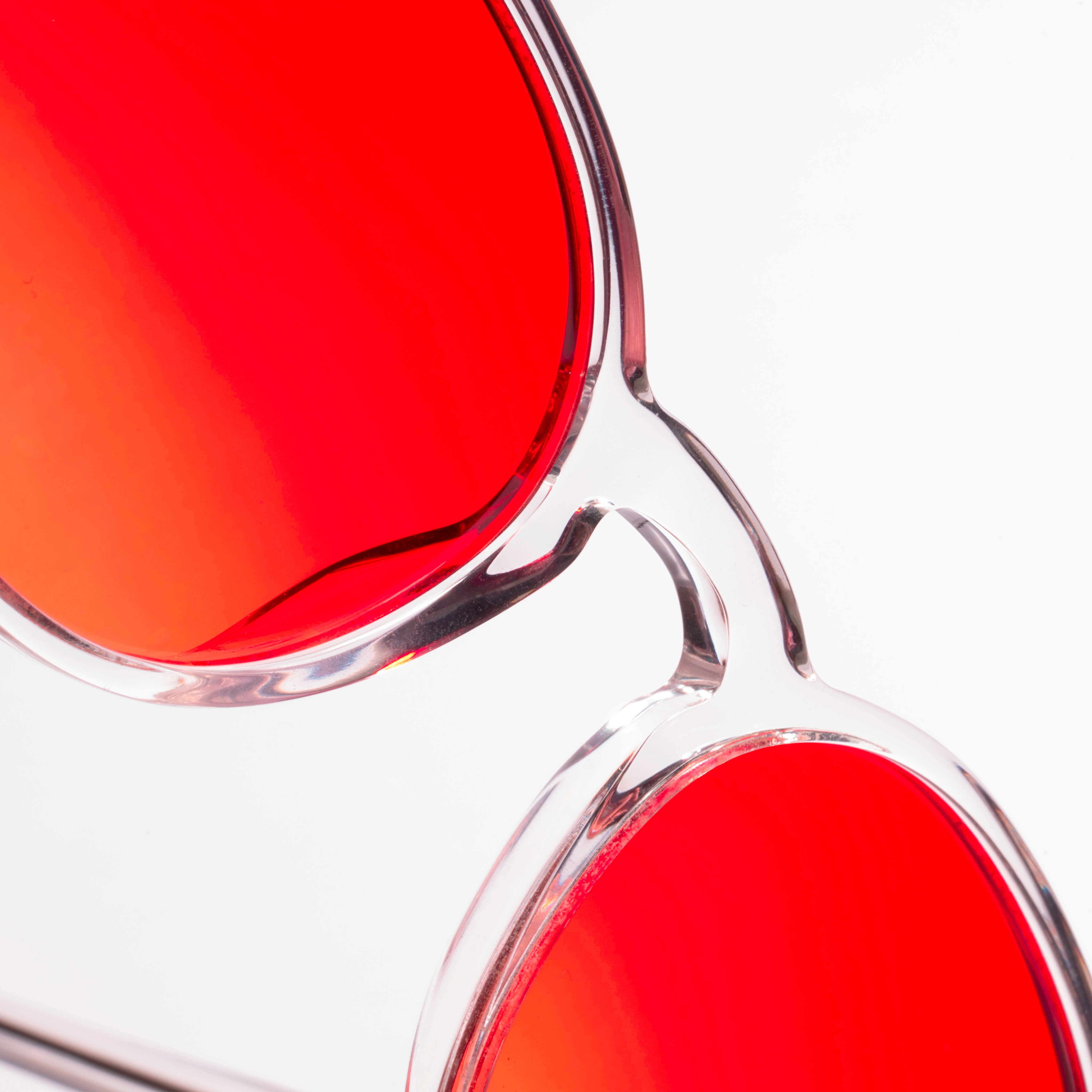 A minimalist silhouette with maximum impact. Clear Italian acetate frames paired with blue light blocking gradient lenses. Includes foldable hardshell case and microfiber lens cleaning cloth.