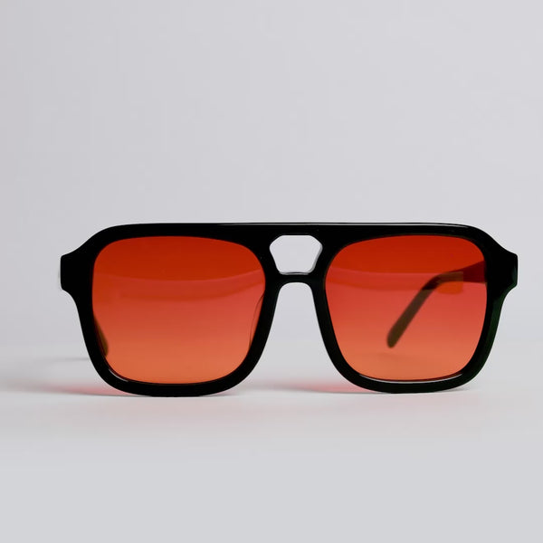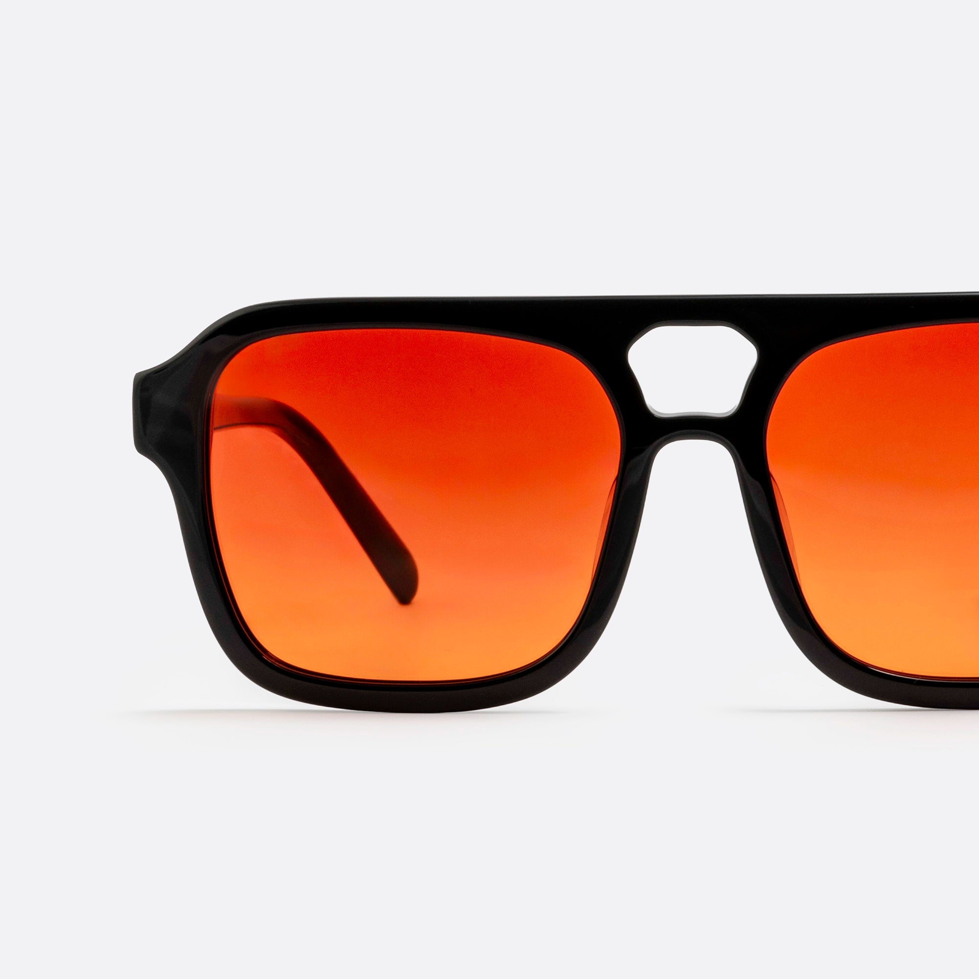 Sunsets use a gradient lens that blocks 99% of blue light and up to 93% of green light. The darker red top shields you from harsh overheads, while the lighter yellow bottom keeps vision clear for evening tasks.