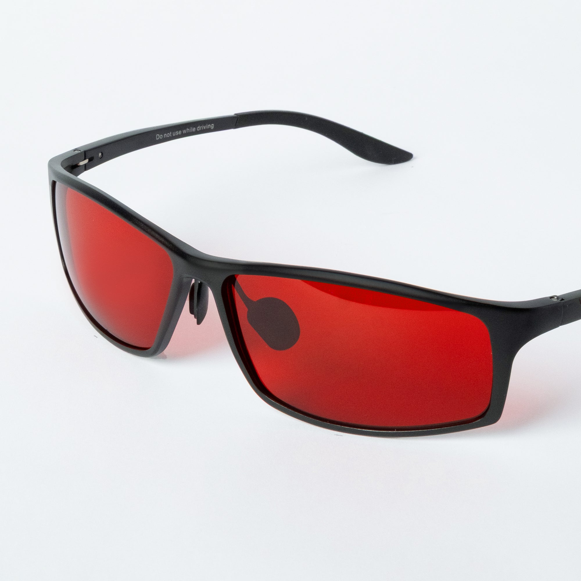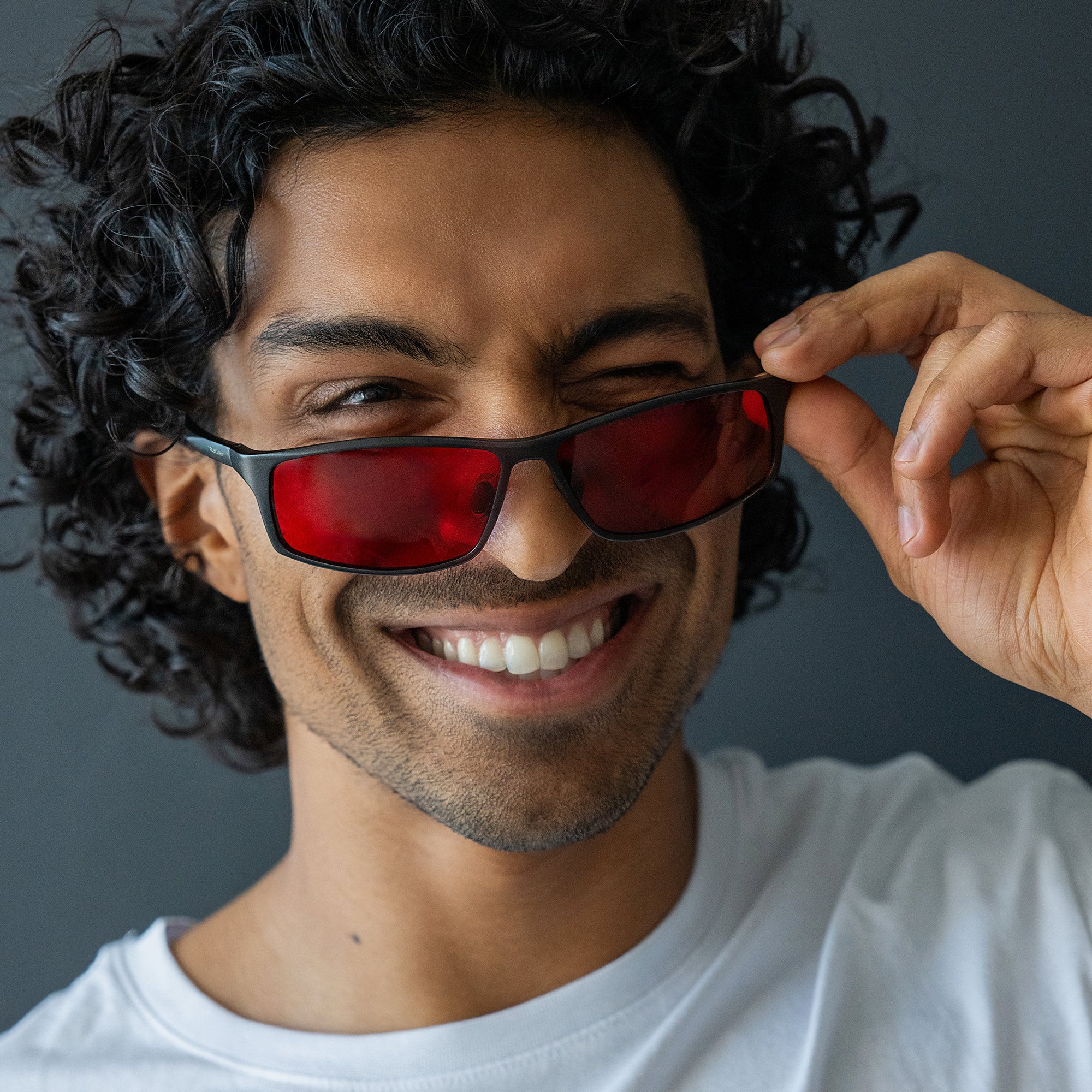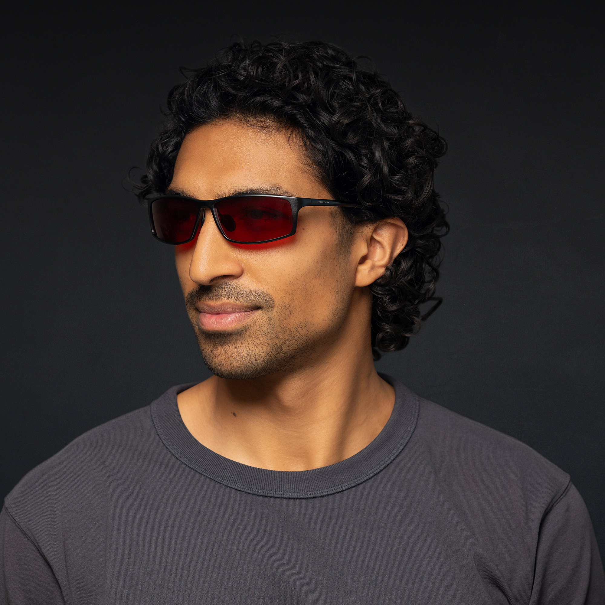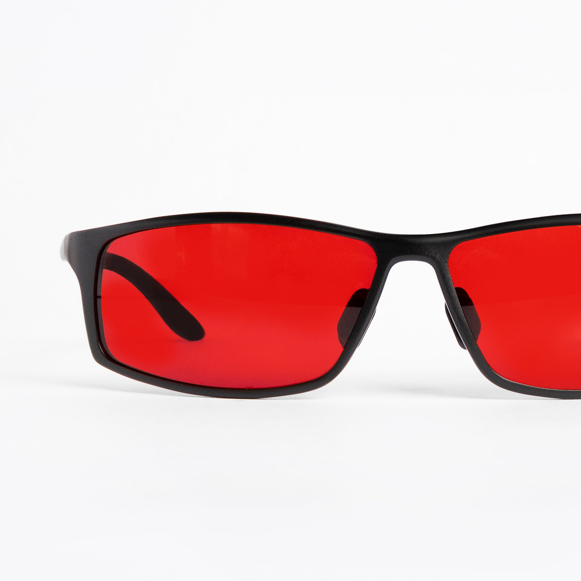 Red lens blocks 99% of blue, green, and violet light, plus 99% of UVA/UVB rays. Engineered to filter all junklight wavelengths that disrupt melatonin production and impact the sleep cycle.